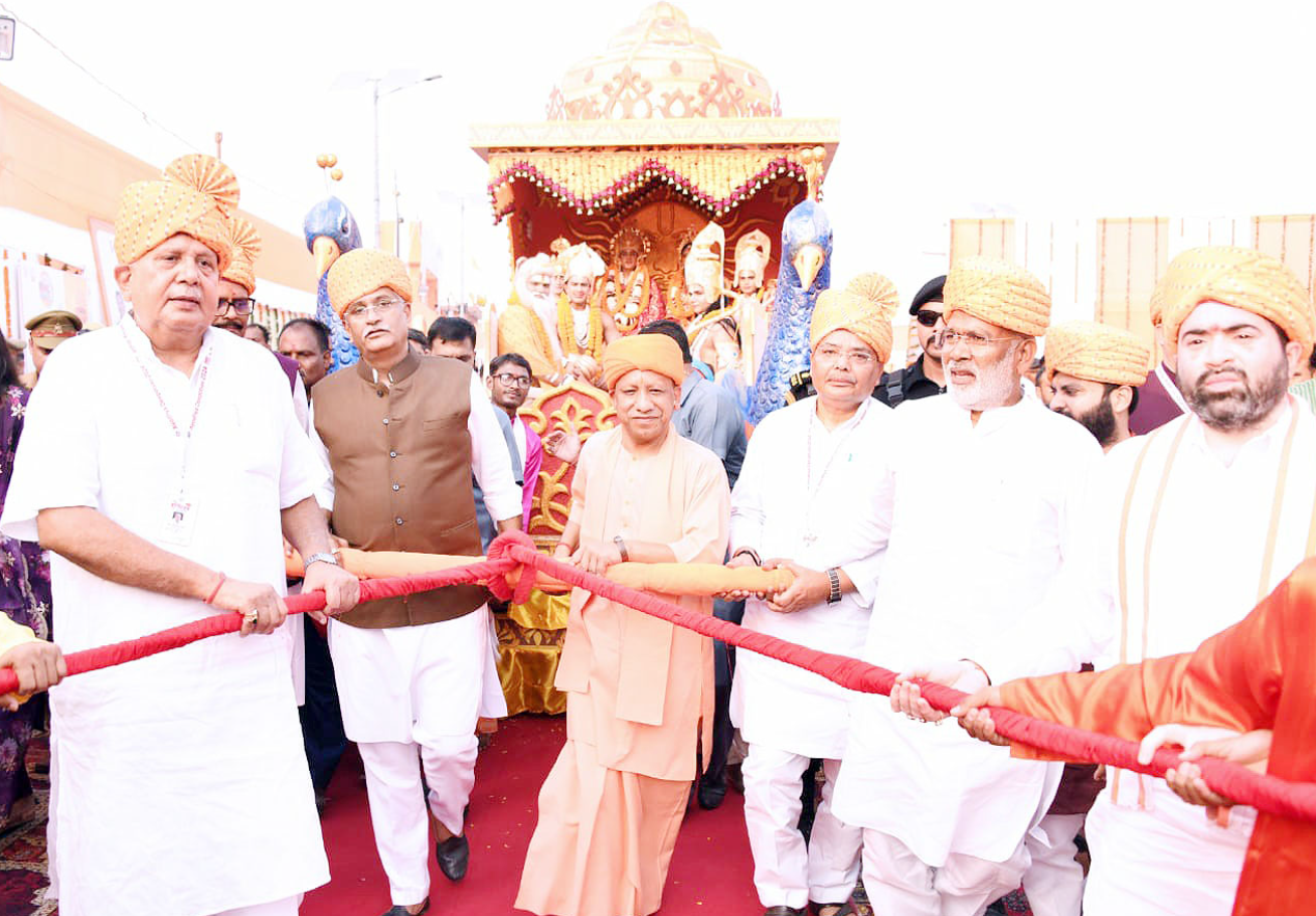 On this, Chief Minister Yogi Adityanath led the ceremony by pulling the chariot of Ram, Sita, and Lakshman as the return of the Lord.